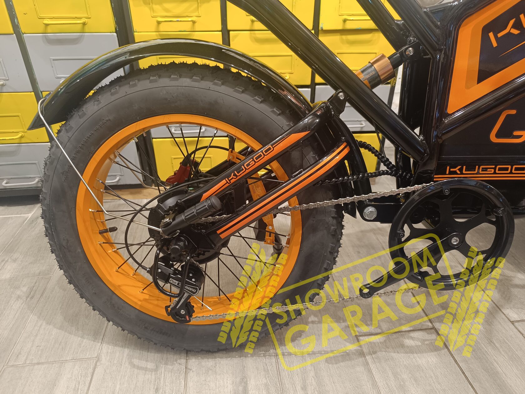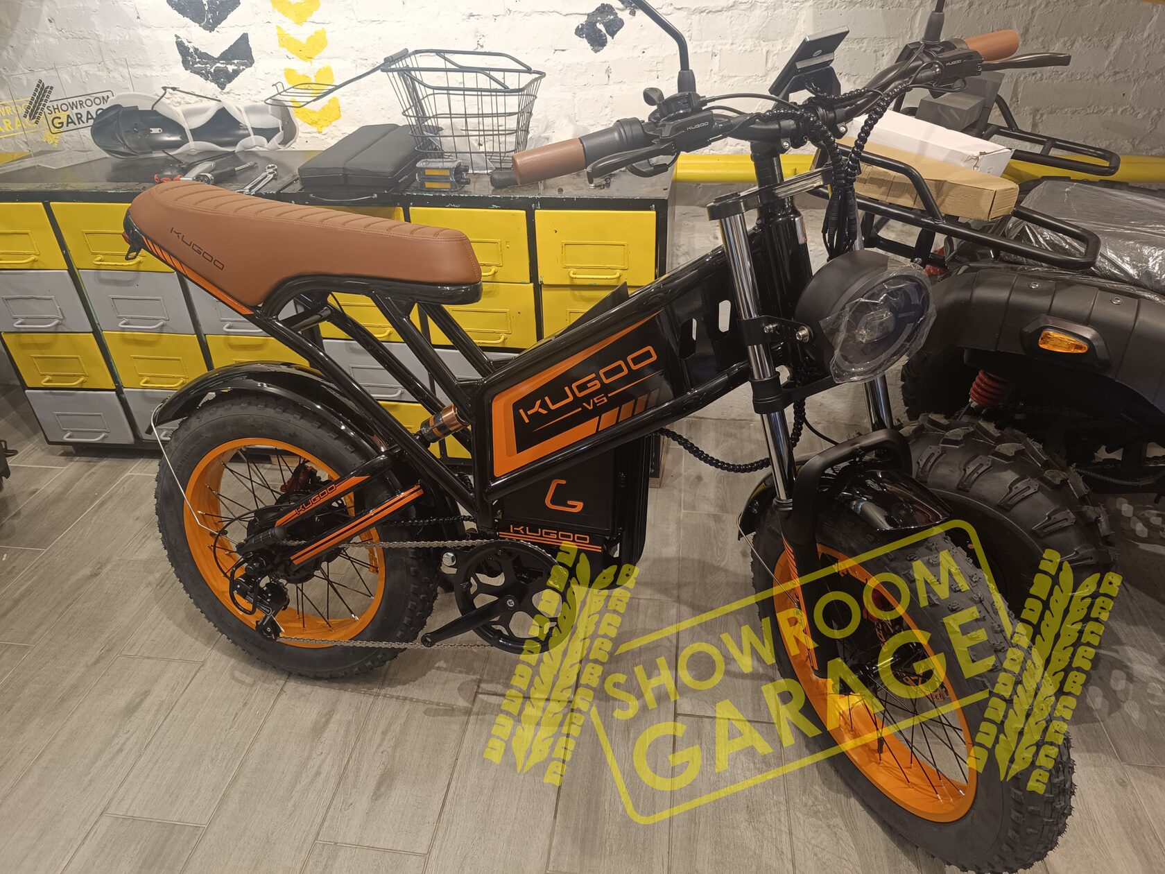 Kugoo V5 — мощный и технологичный электровелосипед с двигателем *750 Вт* и аккумулятором *20 А·ч. Развивает скорость до 50 км/ч и проезжает до 55 км на одном заряде, что идеально для городских и загородных поездок.