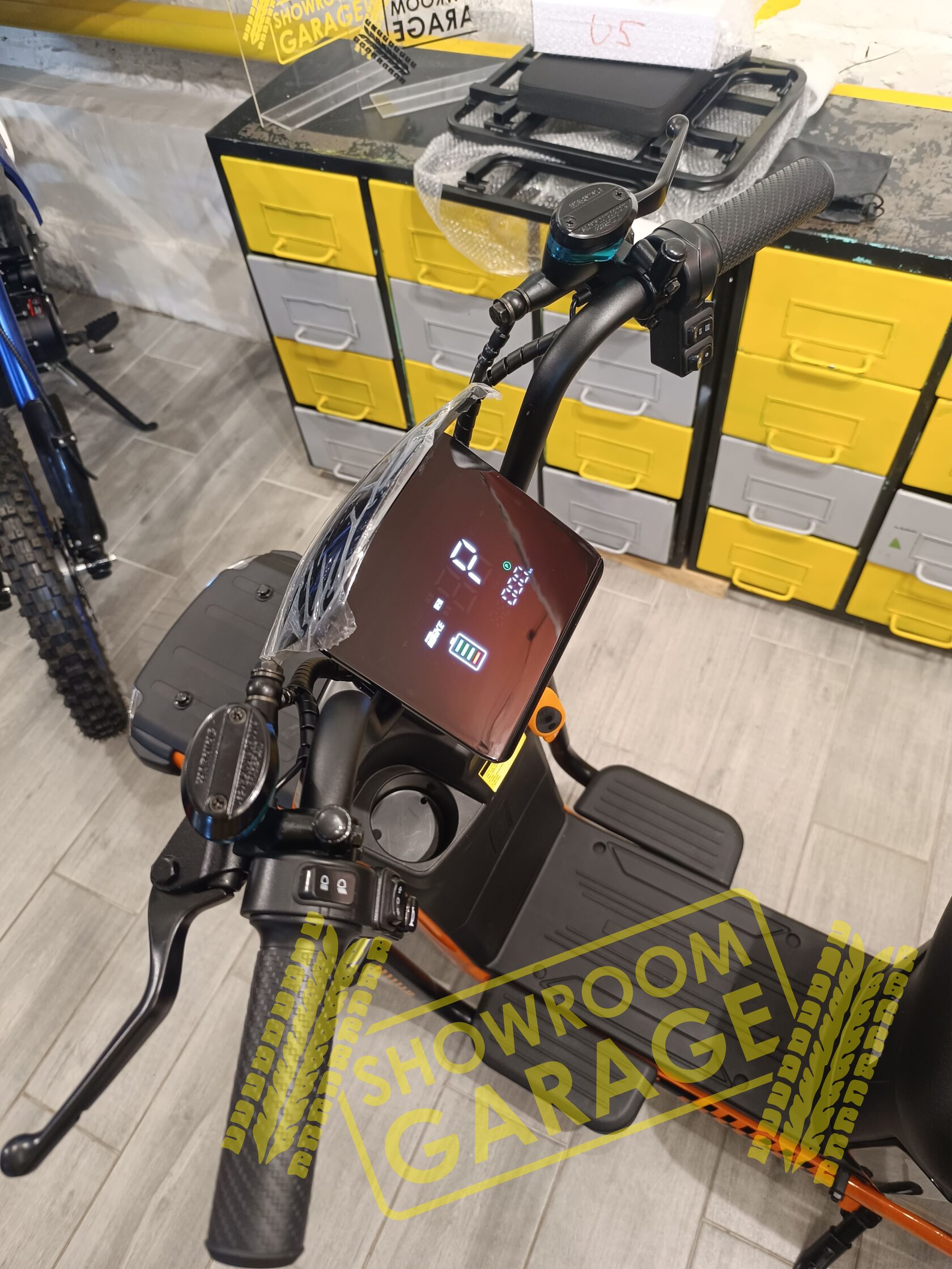 Дополнительные функции: Дисплей отображает скорость, заряд и другие ключевые показатели. Комплектация готова к использованию — фары, подножка и дисковые тормоза включены в базовую версию.