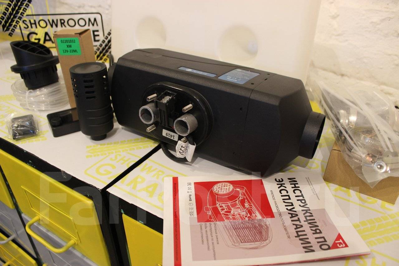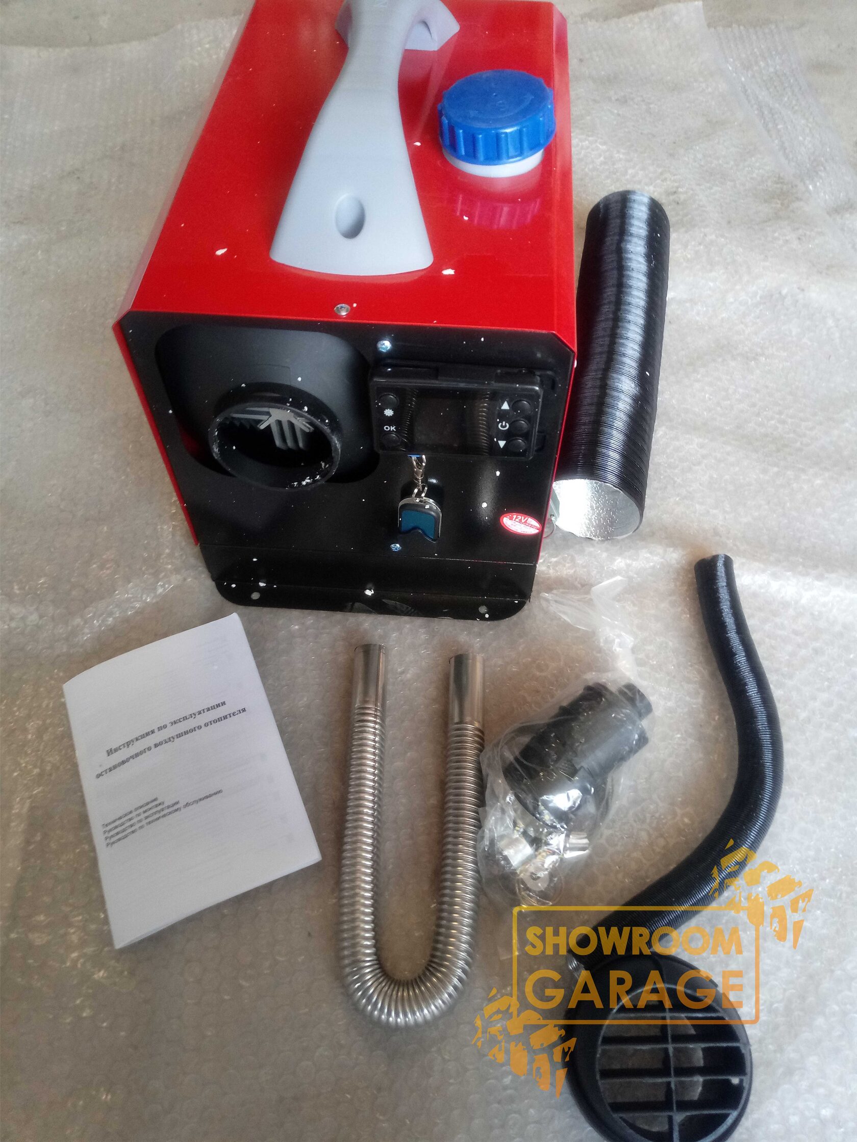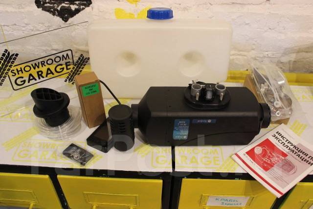 Характеристики: Тепловая мощность 2 кВт Тип топлива Дизель (объем бака 5л) Номинальное напряжение 24V или 12V Тепловая мощность (Вт) 800-2000 Расход топлива (л/ч) 0,19-0,60 Номинальная потребляемая мощность (Вт) 15-90 Рабочая температура (среды) -40С - +40С Вес основной части аппарата (кг) 3 Габариты (мм) 340*145*110 В комплекте 2 пульта. Стационарный , дистанционный.