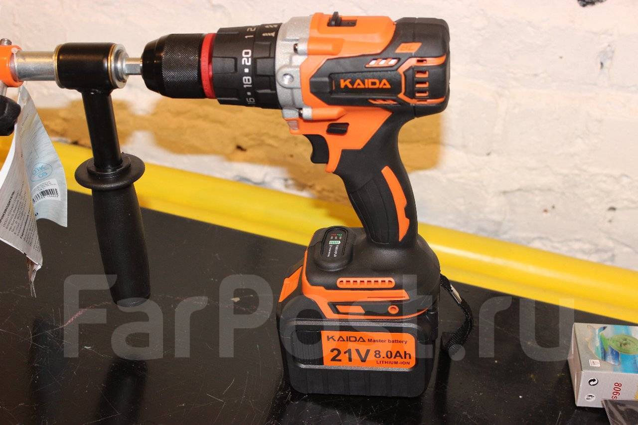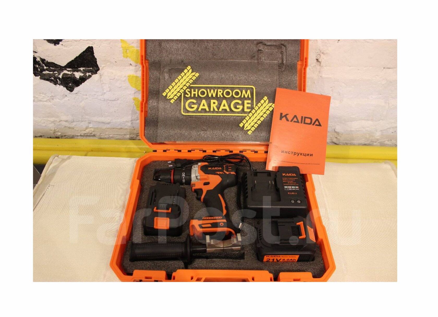 Дрель-шуруповёрт KAiDA 8Ah 21V +ЗУ +зап.аккумулятор Габариты кейса 35х45х13 см; Вес кейса 4950 гр; Вес шуруповерта с одним аккумулятором 2160 гр; Напряжение аккумулятора: 21; Тип аккумулятора: Литий-ионный; Емкость аккумулятора: 8Аh Частота вращения (об/мин): 0-800/0-2000; Максимальный крутящий момент(Нм): 90-130; Масса нетто (кг): 1,4; Напряжение зарядного устройства: 100-240;