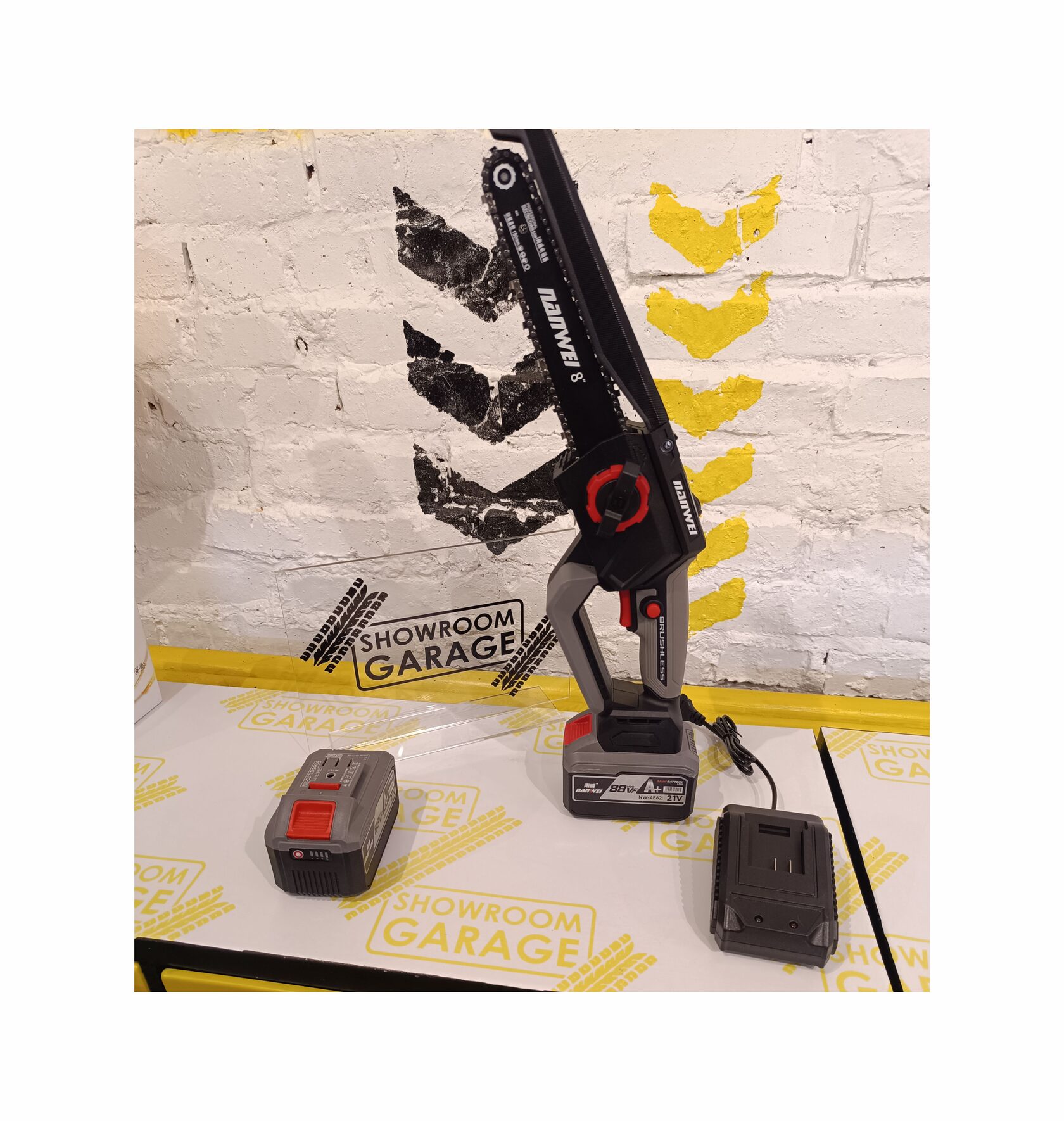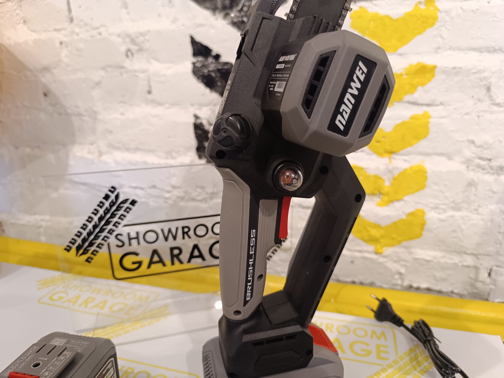 Данная модель поможет Вам избавиться от старомодных инструментов и заменит: топор, ножовку и пилу. Бесщеточный двигатель с медным сердечником высокой мощности, мощная литиевая батарея, отсутствие проводов делает пилу крайне удобной. Литиевая батарея решает проблему постоянного поиска источника питания. Дизайн разработан для легкого и удобного использования одной рукой. Небольшой вес делает данную модель крайне удобной. Однако несмотря на легкий вес, пила обладает мощным двигателем долгой службы, двигатель также защищен от перегрева, поскольку он автоматически отключается при превышении температуры. Простая регулировка натяжения цепи без необходимости разборки натяжение цепи можно легко отрегулировать с помощью винта, не разбирая саму пилу: у основания лезвия находится винт, затягивая который происходит натяжение лезвия.